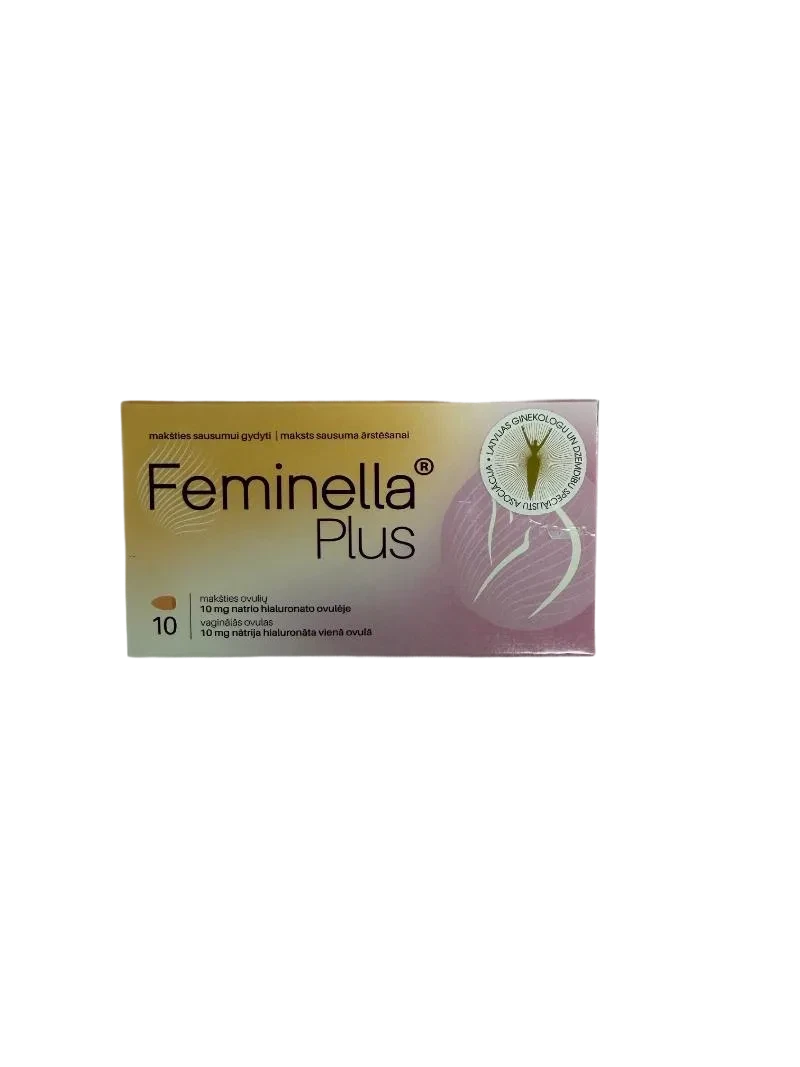 Feminella Plus ir medicīniska ierīce, kas palīdz uzturēt maksts dabiskās aizsargspējas un veicina normālas maksts floras atjaunošanos. Sastāvā esošā hialuronskābe un pienskābe palīdz mazināt maksts hidratācijas traucējumus un/vai maksts pH līmeņa traucējumu simptomus.