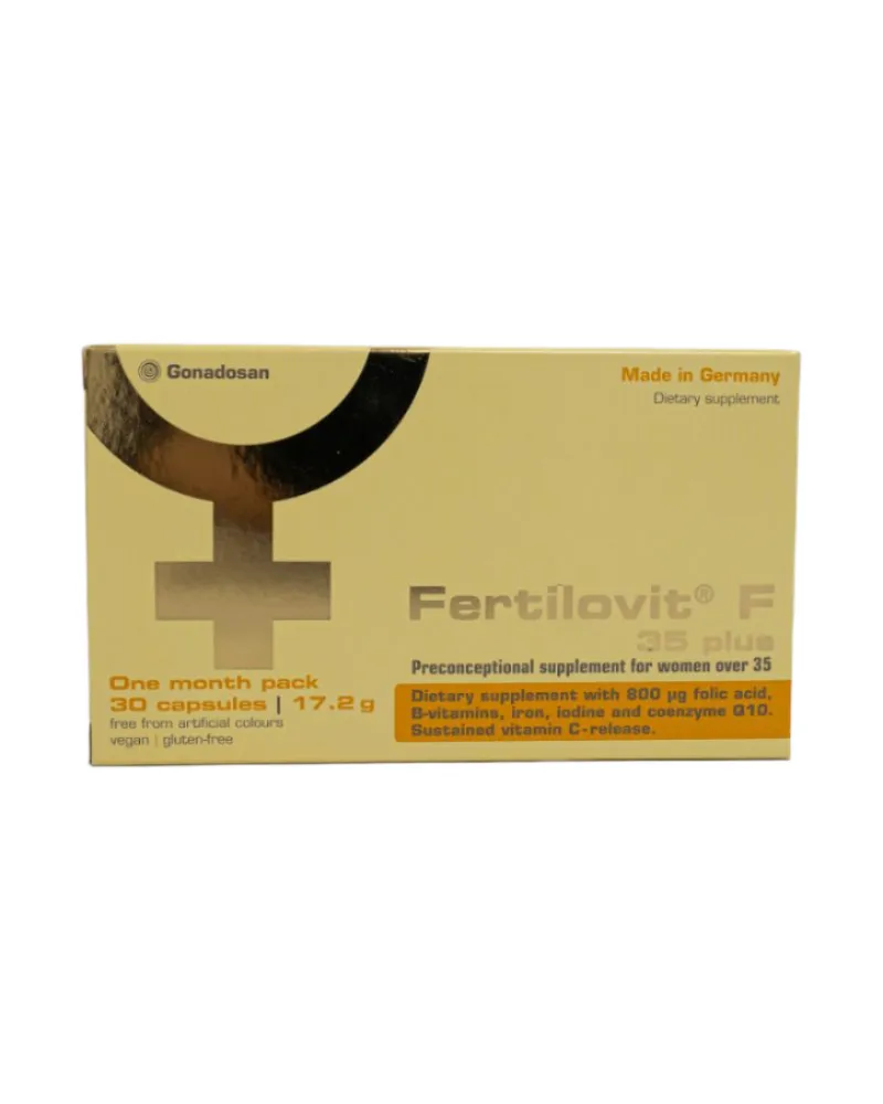 Uztura bagātinātājs Fertilovit® F 35 plus” ir vitamīnu un minerālvielu komplekss, kas palīdz uzturēt sieviešu auglību, kuras plāno grūtniecību, sākot no 35 gadu vecuma.
