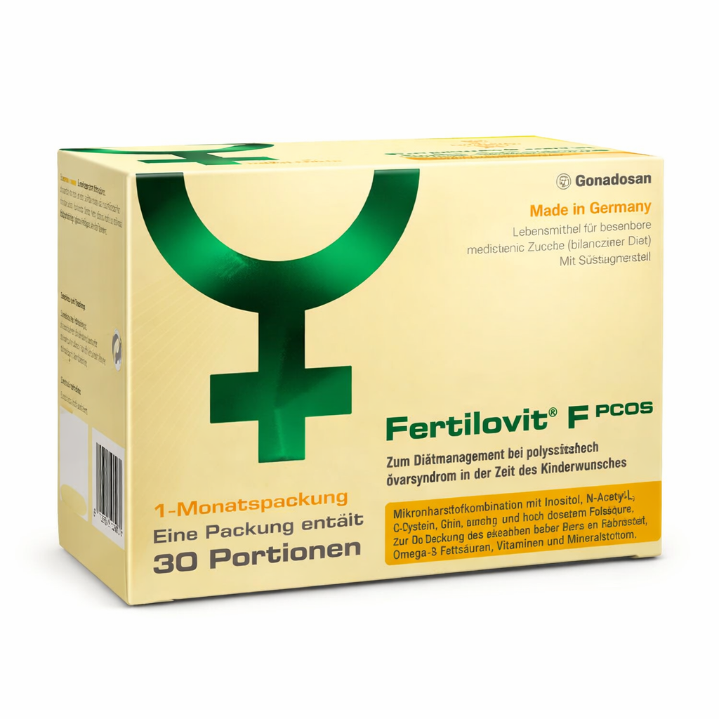 “Fertilovit® F PCOS” ir vitamīnu, minerālvielu, aminoskābju un zivju eļļas komplekss, kas ir paredzēts sievietēm ar policistisko olnīcu sindromu (PCOS) uztura papildināšanai grūtniecības plānošanas laikā. Cinks palīdz uzturēt normālu auglību un reproduktīvo funkciju, kā arī palīdz uzturēt normālu DNS sintēzi.  Vitamīni E, C, cinks, selēns, mangāns un riboflavīns palīdz aizsargāt šūnas no oksidatīviem bojājumiem. B6 vitamīns palīdz regulēt hormonu darbību. B12, D vitamīns, cinks, magnijs, folāti nodrošina noteiktu funkciju šūnu dalīšanās procesā. C vitamīns, niacīns, riboflavīns, tiamīns un jods palīdz uzturēt normālu enerģijas vielmaiņu. Hroms palīdz uzturēt normālu makroelementu vielmaiņu. B6 vitamīns palīdz uzturēt normālu cisteīna sintēzi. Folāti veicina pareizu aminoskābju sintēzi.