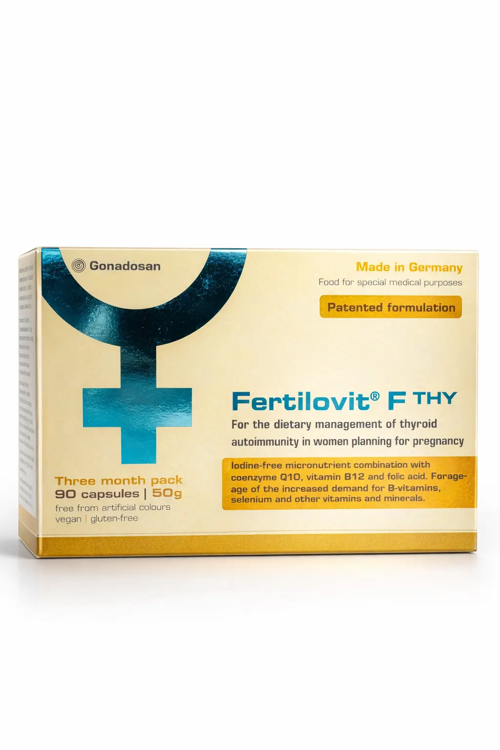 “Fertilovit® F THY” ir vitamīnu un minerālvielu komplekss, kas ir paredzēts sievietēm ar autoimūnām vairogdziedzera slimībām grūtniecības plānošanai.