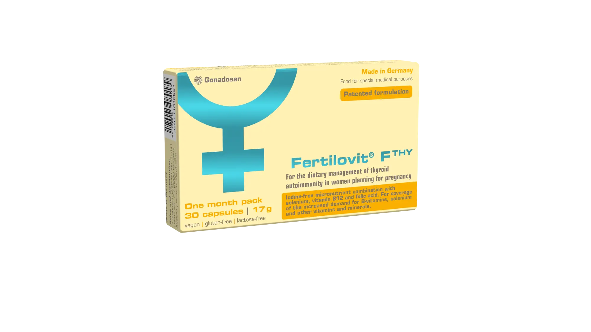 “ Fertilovit® F THY ” ir vitamīnu un minerālvielu komplekss, kas ir paredzēts sievietēm ar autoimūnām vairogdziedzera slimībām grūtniecības plānošanai.