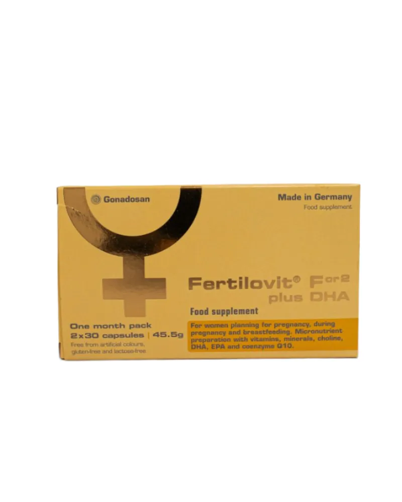 “Fertilovit® For2 plus DHA” ir vitamīnu, minerālvielu un Omega-3 taukskābju kombinācija, kas paredzēta sieviešu uztura bagātināšanai grūtniecības un zīdīšanas laikā. Folāts palīdz atbalstīt mātes audu augšanu grūtniecības laikā. Cinks palīdz uzturēt normālu auglību un reprodukciju, kā arī palīdz uzturēt normālu DNS sintēzi. Selēns palīdz uzturēt normālu vairogdziedzera darbību. Jods palīdz uzturēt normālu vairogdziedzera hormonu veidošanos un normālu vairogdziedzera darbību. Vitamīni E, C, cinks, selēns, riboflavīns palīdz aizsargāt šūnas no oksidatīviem bojājumiem. B6 vitamīns palīdz regulēt hormonu darbību. Šūnu dalīšanās procesā piedalā vitamīni B12, D, cinks, magnijs, folāts, dzelzs. C vitamīns, niacīns, riboflavīns, pantotēnskābe, tiamīns, jods, dzelzs, magnijs palīdz uzturēt normālu enerģijas vielmaiņu. Dzelzs palīdz uzturēt normālu sarkano asins šūnu stāvokli, hemoglobīna veidošanos un normālu skābekļa transportu organismā.