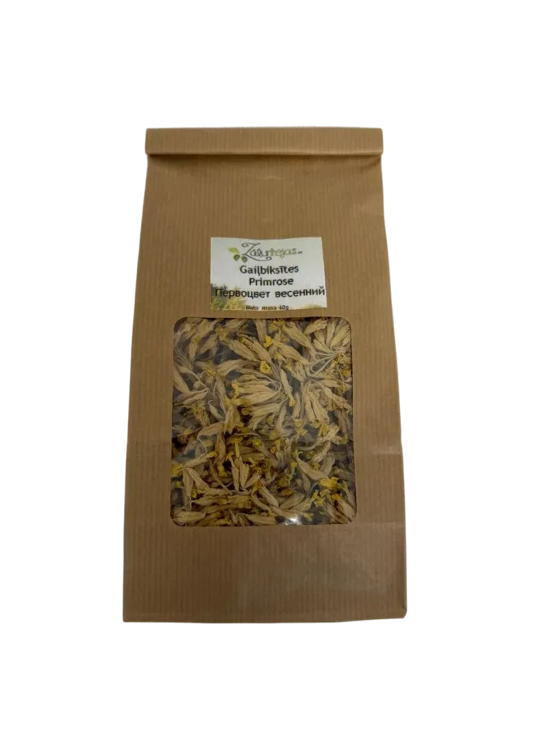 Vecpiebalgas pļavās un mežos rokām ievākta, nesmalcināta beramā gaiļbiksīšu tēja.
