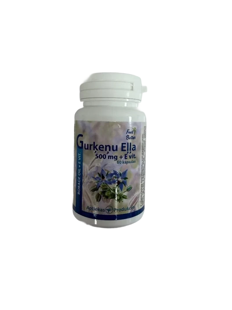 Sastāvdaļas: gurķenes (Borago officinalis L.) sēklu eļļa, želatīns, mitrumuzturētājs – glicerīns, dabīgs E vitamīns (D-alfa-tokoferols).