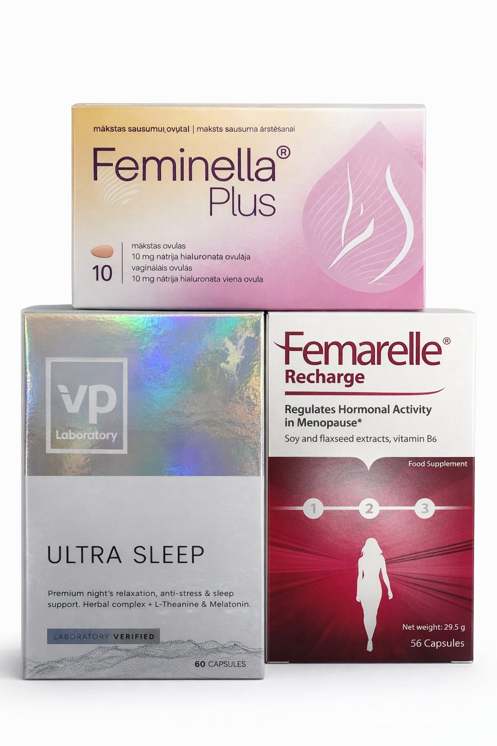Komplekts Menopauzei ir īpaši izveidots, lai sniegtu visaptverošu atbalstu sievietes organismam menopauzes un perimenopauzes periodā. Tas palīdz mazināt biežākos menopauzes simptomus – miega traucējumus, karstuma viļņus, hormonālās svārstības un intīmā komforta izmaiņas.