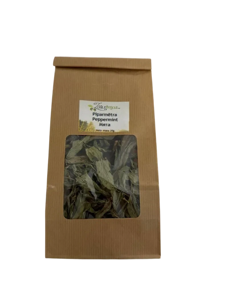 Vecpiebalgas pļavās un mežos rokām ievākta, nesmalcināta beramā piparmētru tēja.
